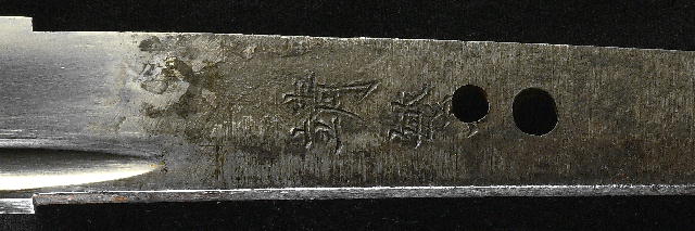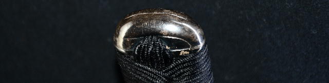 靖国神社内にあった鍛刀場で鍛えられた靖国刀の一振りをご紹介します。作者は靖繁 です。 明治時代に入って廃刀令が出されることにより、刀工はほとんどが廃業を余儀なく されます。多くは完全に作刀を止めるか、鋤や鍬、鎌、包丁などを作る鍛冶に転業して いきます。わずかに一部の刀工だけが、注文に応じて細々と刀を鍛えるだけとなりまし た。明治以降も静岡で鍛刀を続けた笠間一貫斉繁寿、有栖川宮の援助を受けた桜井 (卍)正次(二代固山宗次門)、羽山円真(鈴木正雄門)といった市井の刀工もいまし たが、刀鍛冶として糊口をしのぐことができたのはごくごく一部でした。それらの中 からたった二人、宮本包則と月山(がっさん)貞一だけが、皇室が日本の伝統芸術を 支援するために設けられた「帝室技芸員」となっています。包則は幕末の名工である 横山祐包の門人であり、月山貞一は奥州月山鍛冶の系譜を継ぐ大坂の月山貞吉の養子と なり廃刀令の後も刀剣を鍛え続けていた名工です。 他方、軍隊制度が整えられていく中で、士官は部隊を指図するための指揮刀を必要と しました。当初はヨーロッパ式サーベルが用いられましたので、その指揮刀には、新し くサーベル用に鍛えられたものもありましたが、江戸時代までの刀のなかごを切ったり 削ったりしてサーベルの柄に入るように改造して用いられたものもありました。しか し、日本の軍隊なのだから日本の刀を持って指揮すべきという気運が高まり、昭和に 入ると軍刀は日本刀、それも太刀を基本とする形に変更されます。 そうした中で陸軍の支援によって生まれたのが、靖国神社の境内に作刀所を設けた 日本刀鍛錬会でした。池田靖光(池田一秀門人の一光に学ぶ)、笠間一貫斉繁継、 靖憲(横山包義門人)の三人を主任刀工として、終戦までの間に多くの軍刀を鍛え上げ ました。目釘穴を開けるため以外はすべて、機械を一切使わず人力で刀を打ち上げたと いいますから、相当に手がこんでいます。(例えば、関の軍刀の場合、そのかなりの ものは機械式のハンマーも使ったものであり、完全に人力で鍛えた刀を「本鍛錬」、 機械ハンマーを用いた刀を「半鍛錬」と呼んで、価格にも差を付けていました。) 今回ご紹介する靖繁は、三人の主任刀工の内、池田靖光の門人です。山形県出身です から、その縁を頼って同郷人の靖光に師事したのでしょう。当時の評価は非常に高く、 昭和19年(1944年)の陸軍軍刀技術奨励会の入賞列位では、陸軍大臣賞(1名)に次ぐ 総裁賞(4名)にその4番目、つまり全体の5番目に靖繁の名が見えます。全国の数多くの 刀工中、第5位にランクされたということになります。その技量が折り紙付きであった ことを意味しますね。 刀身ですが、ほぼ2尺3寸の長さがあります。棒樋も切っていますので、手持ちは非常 に軽く感じます。肌にはみっしりと地沸が付き、焼き刃にも緩みはなく、よく出来た 一振りだと思います。 拵ですが、縁頭、鯉口、こじりとすべて銀金具で揃えてあります。鍔は取り回しやす いようにということかもしれません、わざと脇指用の小さめの鍔を使っていました。 元の持ち主のこだわりポイントかもしれません。 靖国刀の在銘品を白鞘入り、拵付きでお届けします。ぜひ、皆様のお手元にどうぞ。