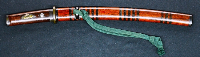 Kawachi-no-Kami Fujiwara KUNISUKE (1st), TOKUBETSU HOZON TOKEN of NBTHK 河内国(大坂) 江戸時代初期 特別保存刀剣(平成7.8.1、No.140625) 刃長9寸9分弱 (Length30cm) 反り1分半弱 目釘穴(Holes in NAKAGO)3 平造 庵棟 うぶなかご 小板目肌非常によく詰み 小杢目僅かに交じり 地沸厚く微塵につき 地景入って 映り立つ 小沸出来 湾れ調子 小互の目乱れ刃 丁字刃交じり 足やや細く入り 物打ちに向かって 次第に焼き幅を広げる 帽子 小丸 返り尋常 表側 はばき元に梵字有り なかご やや刃上がり栗尻 鑢目 大筋違 金着せ銅一重はばき全面に祐乗鑢 白鞘入り 黒石目塗鞘小さ刀拵付 In SHIRASAYA with KOSHIRAE 210万円 (2,100,000 Japanese Yen)(委託品/consigned) 元幅(Width)29.4mm 元重ね(Thickness)7.4mm なかご長(Length of NAKAGO)107mm 詳細画像(初代国助) 7.無銘(馬手指しか) MUMEI in KOSHIRAE, KOTO? 古刀か 刃長9寸3分半(Length 28.3cm) 反り2分(Curvature 0.6cm) 目釘穴(Hole in NAKAGO) 1 平造 庵棟 うぶなかご 小板目肌 全身に地景入る 匂い出来 細直刃 帽子 小丸く 返り浅い なかご 刃上がり栗尻 ヤスリ目 わずかに勝手下がり 赤銅着せ銅一重はばき 小柄付き 茶に縞入り変わり塗鞘小さ刀拵付き In SHIRASAYA with KOZUKA お引き渡しいたしました。ありがとうございます。 元幅(Width)22.6mm 元重ね(Thickness)4.4mm なかご長(NAKAGO Length)88mm 詳細画像(無銘短刀) トップページへ |